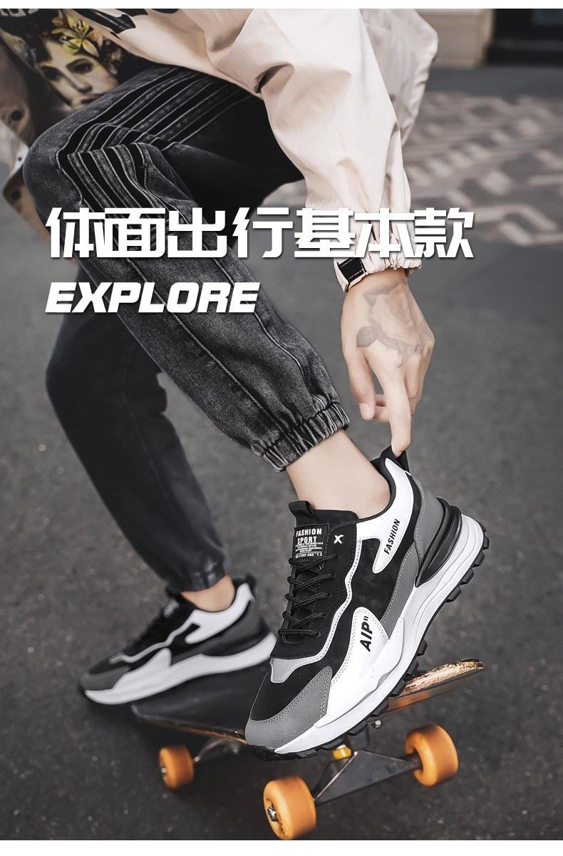 买一送一品牌加绒男鞋秋冬季运动鞋皮面防水工作劳保鞋跑步老爹鞋